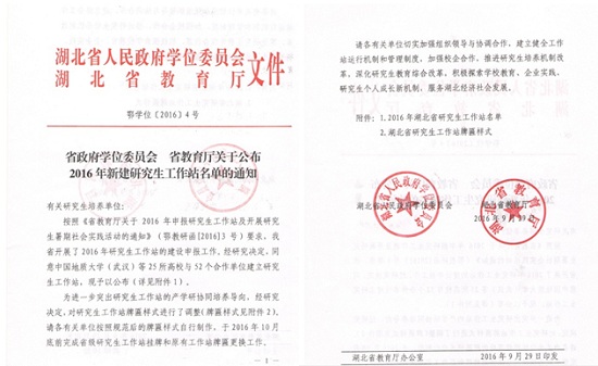 近日,省政府学位委员会、省教育厅公布了2016年新建研究生工作站名单,我校经济学院与长江成长资本投资有限公司合作建立的研究生工作站获批。