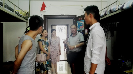 为了及时了解新生是否顺利入住,当天下午,学院分党委书记毛长文、副书记邹茜及2016级新生辅导员苏耘老师一行专程来到六栋和十栋宿舍楼看望新生并慰问了新生家长。在女生宿舍,邹书记与金融11602班沙琦玥同学亲切交谈,询问目前生活有无困难,嘱咐她要珍惜学习机会,主动了解专业培养方案和课程安排,利用图书馆等现代资源丰富自己的知识结构,提早做好学业规划。在走访男生宿舍时,毛书记对新生及家长承诺:“新生在学校如果有什么困难可以随时找学院,学院一定尽全力解决,请各位家长放心!”家长们听了毛书记的话后心中对孩子的担忧也随之消散,安安心心地把孩子交给了学校。