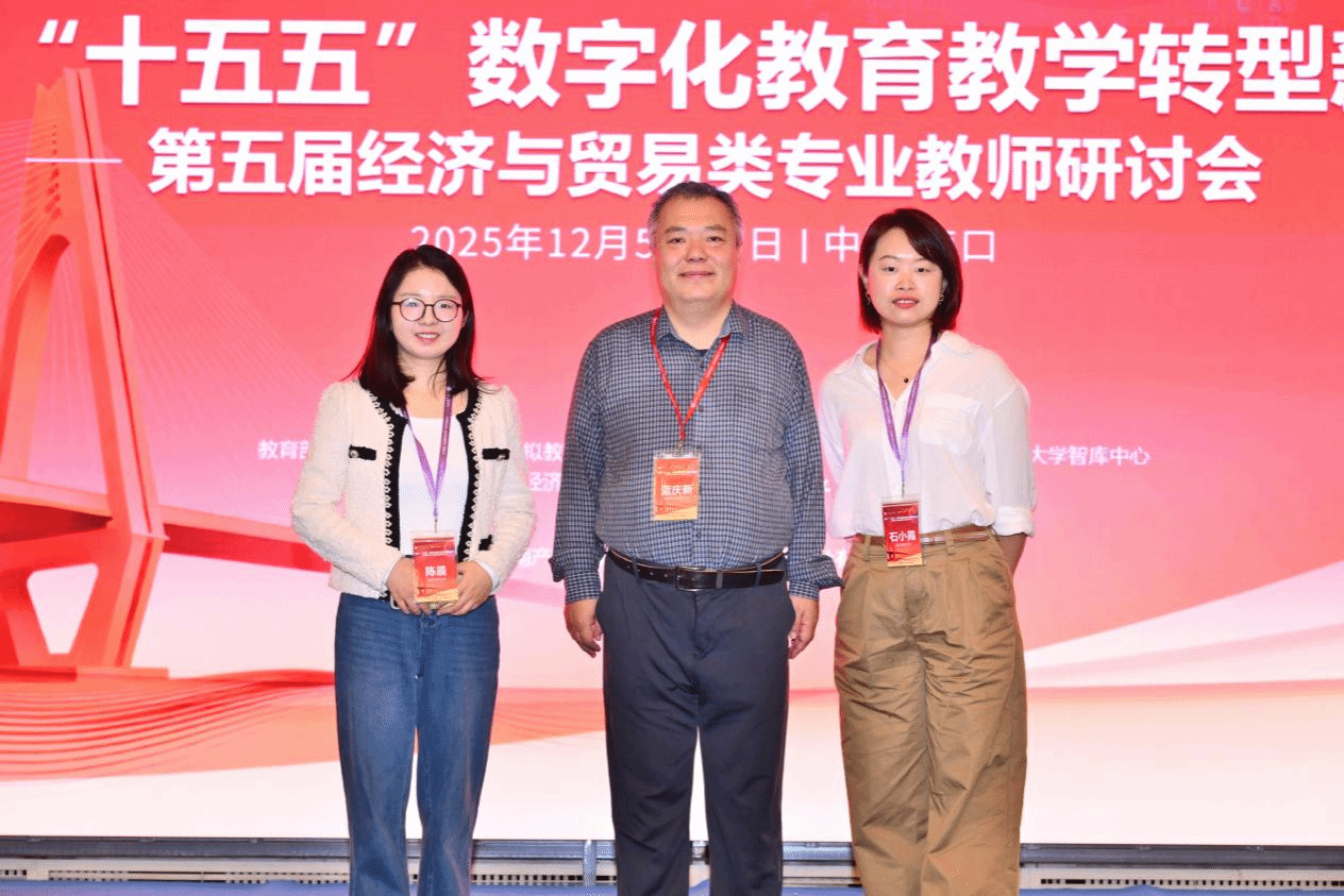 12月6日-7日,经济学院教师石小霞、陈晨赴海口参加面向“十五五”数字化教育教学转型新路径——第五届经济与贸易类专业教师研讨会。该会议为精准对接数字经济发展对经贸专业人才培养的新要求,破解传统教学与产业需求脱节、科研创新动能不足等痛点,集结全国各大高校国际经济专业教师进行专题研讨与交流。