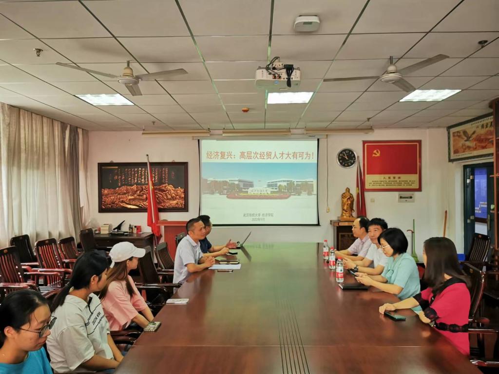 会上,邓光君书记代表学院对武汉纺织大学经济学院一行来访表示热烈欢迎,随后双方领导向大家介绍了各自的办学历史,专业发展及学生考研就业情况,双方就专业建设展开讨论交流。然后,段院长向大家介绍了经济学院的办学特色及研究生招生,并向湖师的学生宣传报考武汉纺织大学研究生,引起了在座学生的兴趣,他们对武汉纺织大学研究生的招生分数线、培养环节及就业去向等问题进行咨询。希望以本次交流为契机,今后双方进一步加强沟通,相互学习,充分发挥办学特色和优势,共促两所高校经济专业高质量发展。