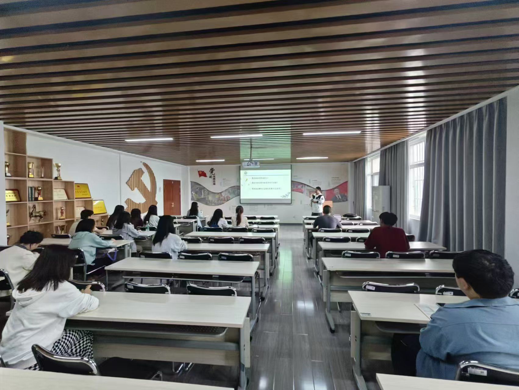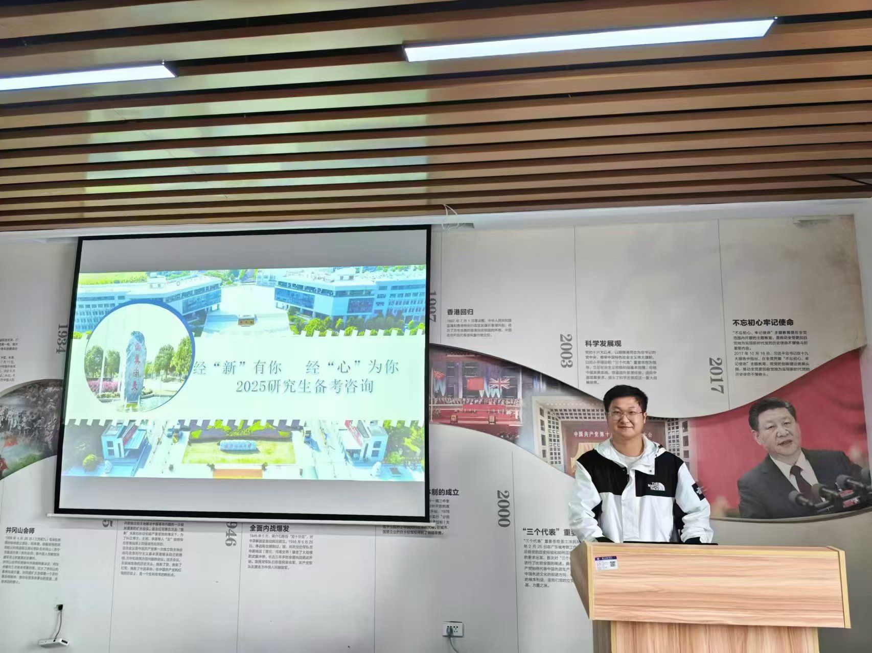 为进一步拓展学院研究生生源渠道,吸引更多优秀学子报考,10月15日,学院研究生招生团队成员、2024级金融专硕研究生邓子扬前往武汉商学院开展招生宣传活动。活动在武汉商学院北二教学楼515进行,武汉商学院经济学院金融教研室陈登老师与2022级经济与金融、商务经济学专业40余名本科生参加本次宣讲会。