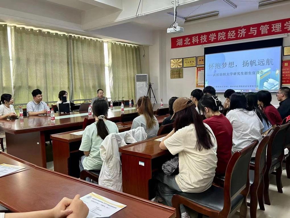 2024年硕士研究生招生工作开始启动,为了提高招生质量,学院成立研究生招生宣传工作组,对招生中的每个环节进行了部署。9月15日上午,本院郭雪老师与管理学院、会计学院相关老师一行前往湖北科技学院进行招生宣传。湖北科技学院经济管理学院的领导非常重视此次宣传活动,组织大四学生及部分外专业学生聆听宣传。宣传会上,我校的经济、管理、会计三个学院对学校、学院以及招生计划分别做了介绍。本院的郭雪老师给在座的学生发放了我院的招生宣传册,并且为大家介绍了本院的学科发展特色,研究生的招生计划及培养模式。