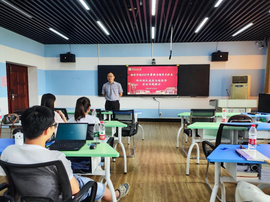 为营造浓厚的科研氛围,完善学科建设并开拓我院教师研究思路与学术视野。7月13日上午,学院在崇德楼07-305举办了第425期阳光论坛暨经济学院2023年暑假专题学术沙龙。本次活动主题为“科研团队建设与经济学前言问题探讨”,由王滨院长主持,学院各团队骨干老师参与了本次活动。