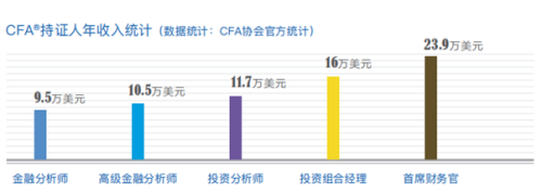 据不完全统计,我国今后十年内每年将需要15万金融领域的国际化实践型专业人才。考取CFA证书未来能在投行、基金公司、证券、银行、保险等各个领域胜任各种岗位,CFA持证人薪酬普遍较高。