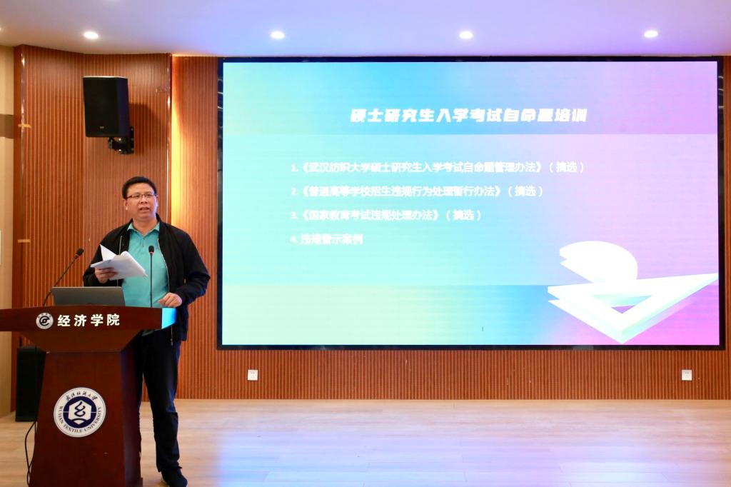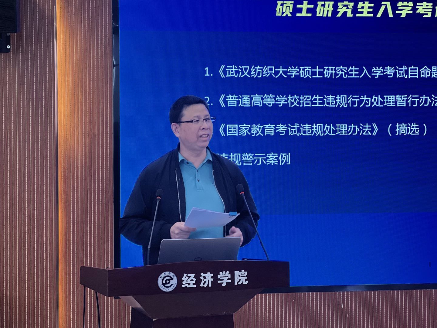 会上,学院党委书记刘园美带领大家学习了《武汉纺织大学硕士研究生入学考试自命题管理办法》《普通高等学校招生违规行为处理暂行办法》和《国家教育考试违规处理办法》,并通报了几例违规警示案例。他要求全体教职工以此为戒,落实规章制度、做好监督管理,高度重视自命题工作,强化底线思维。
