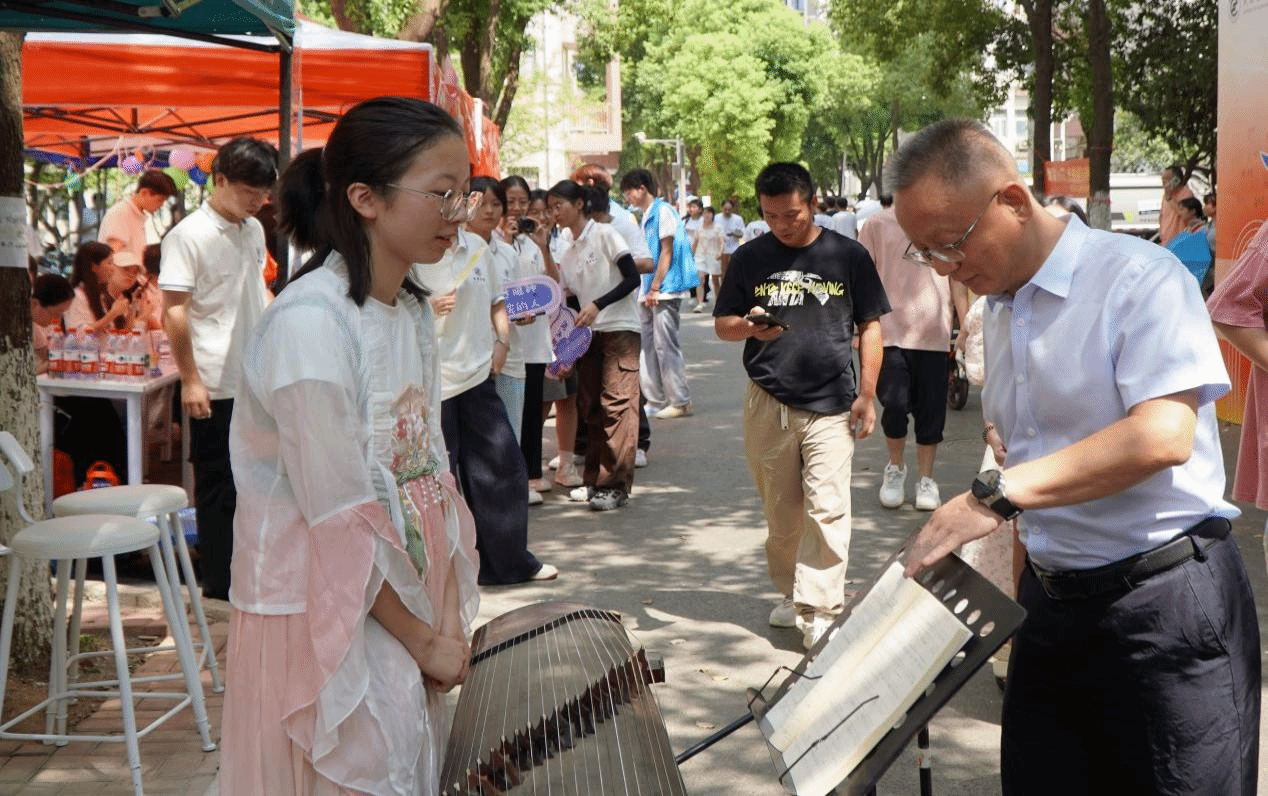 为了让新生感受到经院“大家庭”的温暖,9月8日,校党委副书记、副校长罗锦银走访“红色先锋”一站式学生社区,了解学院迎新情况。在翻阅学院迎新资料时,罗锦银建议在新生指南中增加实用的生活小贴士,帮助他们有条不紊度过新环境。“学校环境适不适应?”“有没有什么困难?”走进学生宿舍,他与新生及家长沟通交流,详细了解大家的生活适应状况,赠送精心“生活大礼包”,希望同学们能够把纺大当作自己的又一个家,把老师们当作自己亲人,在四年学习生活中留下宝贵青春记忆。在得知CFA12401班胡修齐主动参与到学院特色迎新活动——街头文艺展演时,他称赞连连,驻足观看了胡修齐同学弹奏的古筝《高山流水》。