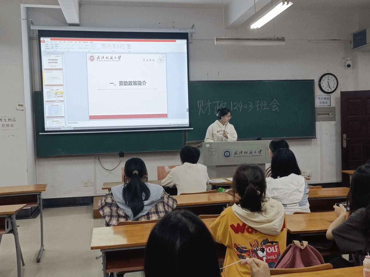 会上,老师以及各班班长通过解读资助政策和资助流程,帮助同学们了解国家、学校、社会的“奖助贷补”资助知识。随后,详细介绍了国家奖学金、国家励志奖学金、国家助学贷款等政策的评选流程、评定标准以及适用对象,进一步解读《武汉纺织大学家庭经济困难学生认定工作实施细则》,鼓励学生坚定理想,勤奋学习。此外,各班还进行了防诈骗教育,老师对诈骗常见手法、行骗常用话术以及维权方式进行了详细说明,特别强调了电信诈骗的危害和防范措施,有效提高了学生们的防范意识和对诈骗手段的辨别能力。