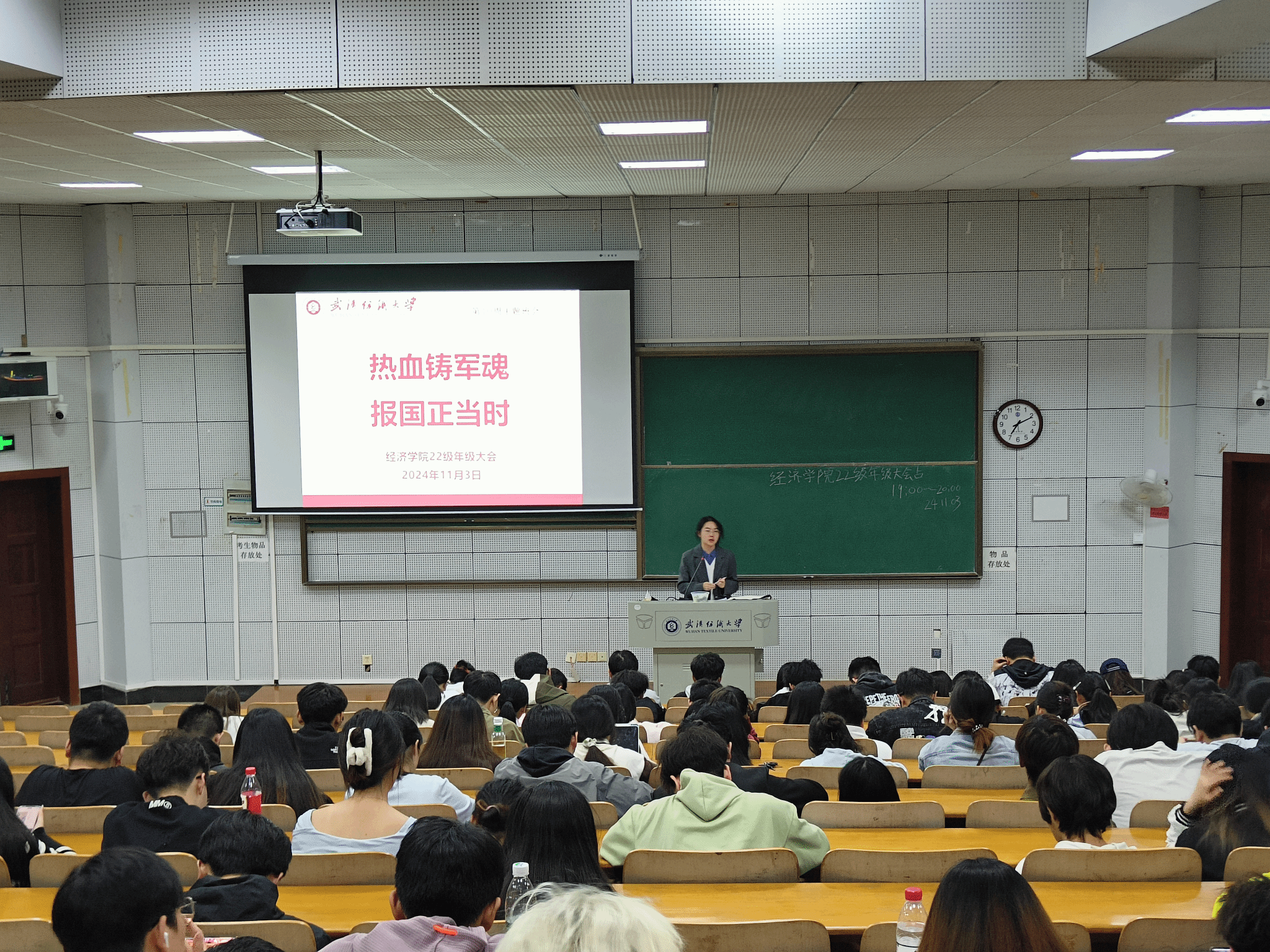 各年级辅导员、班主任围绕“热血铸军魂,报国正当时”的主题,从部队简介、应征入伍基本条件、入伍流程、大学生参军特别优惠政策、军营生活、征兵防诈骗六个方面对大学生应征入伍指南进行详细的讲解。他们指出,参军报国既是磨砺人生、实现理想抱负的重要途径,更是热爱祖国的高尚行为,同学们应坚定理想信念,练就过硬本领,投身强国伟业。随后,老师们以“遵守网络秩序,切莫翻墙违法”为指引,结合生活中的典型案例,向同学们阐述了“翻墙”的含义、危害以及处罚等,并希望同学们以法为尺,规范网络言行,坚决抵制“翻墙”行为,共同维护网络秩序。同时,各年级开展国家奖学金政策宣讲、2024年武汉纺织大学国家励志奖学金等五项奖助学金评选工作宣讲,确保大家正确理解资助政策,了解相关程序。