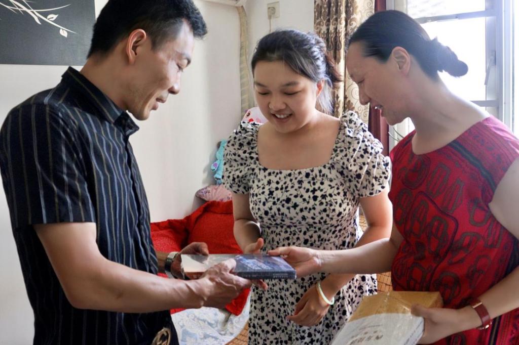 交谈中,金常委向思佳赠送了中国工程院院士、校长徐卫林著的《航空航天纺织品探秘》和专业课《西方经济学》教材,以及学院定制的雨伞和帆布袋,代表着打好专业基础、勇攀科学高峰的期盼,学校将为每一名学子的健康成长遮风挡雨、铺路架桥。“虽然还没去学校报到,但已经感受到纺大老师的热情和家庭一样的氛围,把孩子交给学校特别放心”,陶爸爸连连称道。