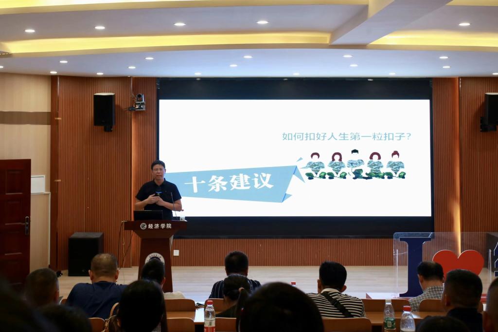 9月11日下午在崇德楼T301学术报告厅,经济学院组织召开新生家长会,从学院师资力量、专业设置、学科建设、科研成果以及学生日常管理等方面向新生家长全方位介绍经济学院。2023级新生家长、学院党政班子成员、新生辅导员及班主任参会,会议由学院党委副书记李静宇主持。