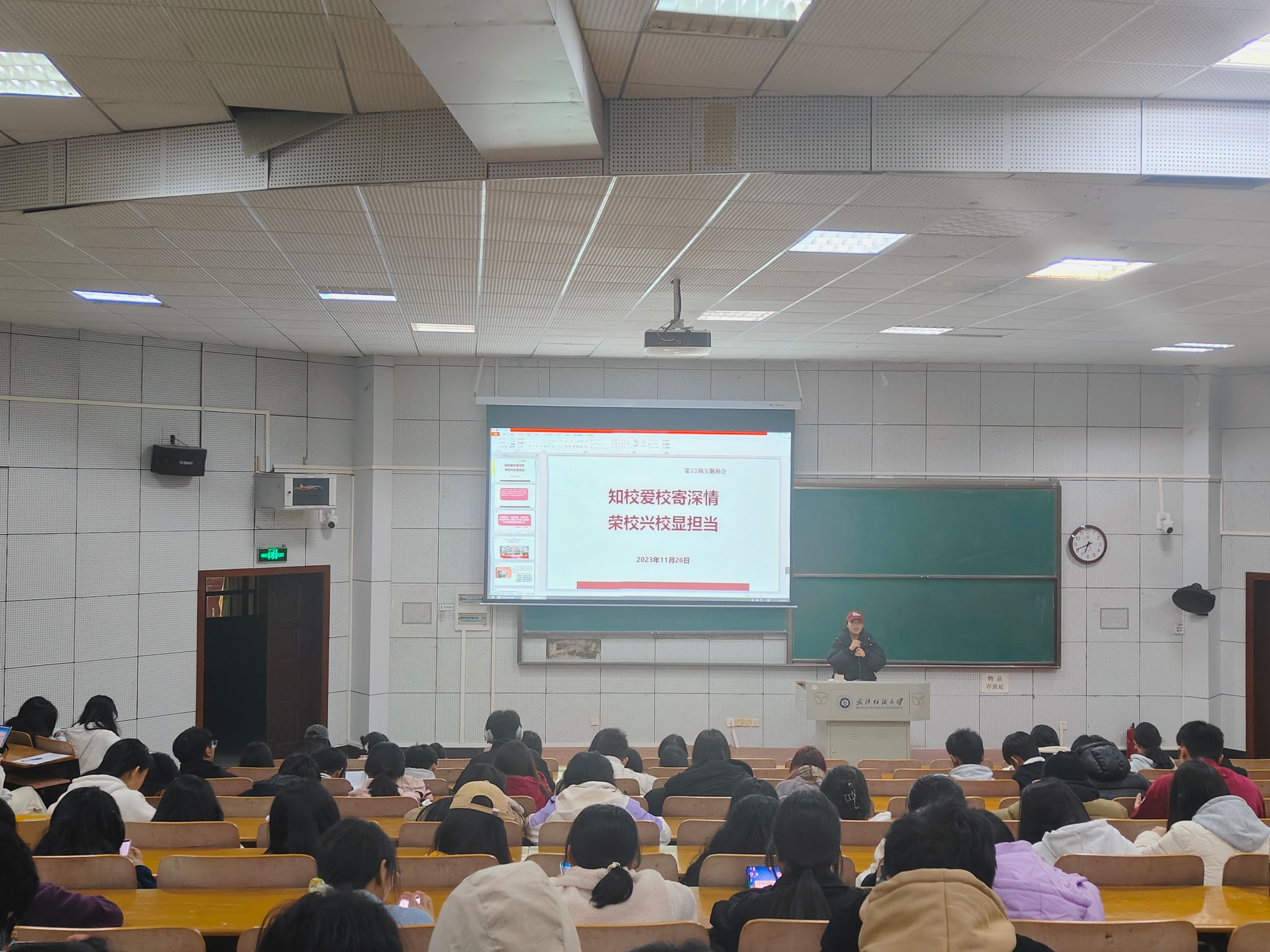根据学校及学院相关工作安排,11月26日晚,学院全体辅导员、班主任通过线下方式,以主题班会和年级大会的形式深入各班级组织召开晚点名,了解学生状态,开展“知校爱校寄深情,荣校兴校显担当”主题教育班会,学院全体本科生、研究生参加。