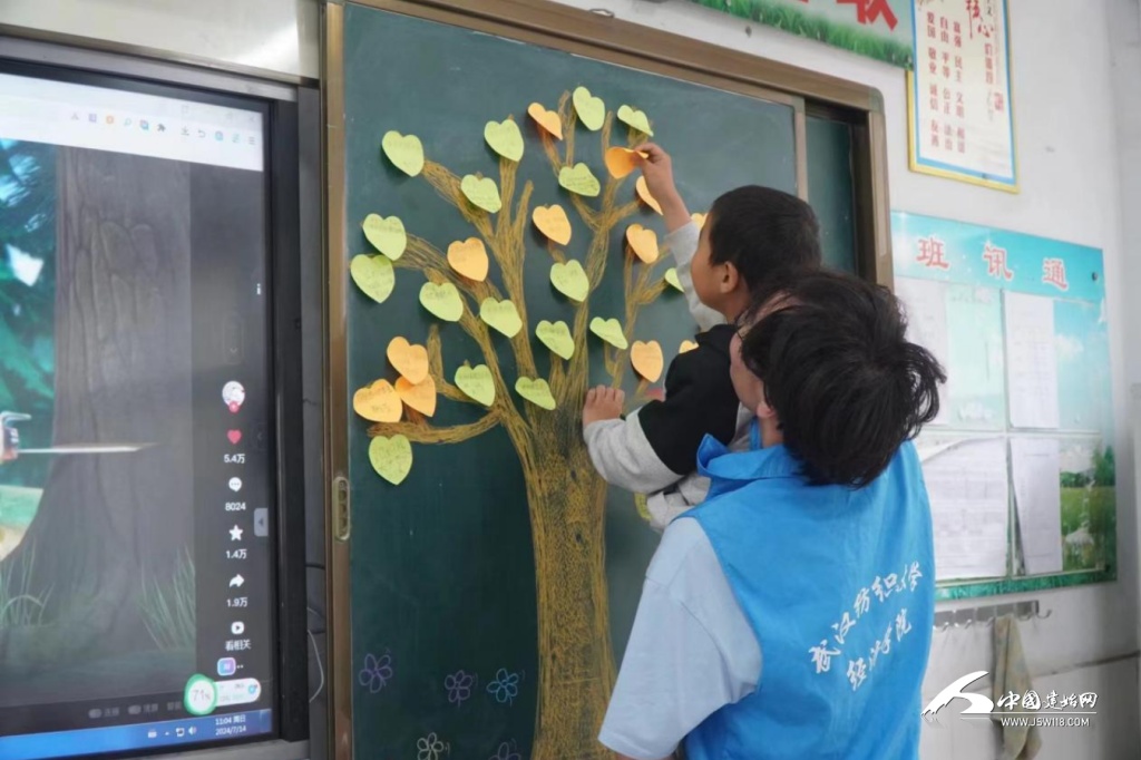 课堂上,小朋友们在心愿便利贴上写下自己的心愿,贴在心愿树上,希望小朋友们的心愿像小树一样茁壮生长。在得知黄宏杨小朋友的心愿是为妈妈画一幅画后,支教队员杨天赐指导他成功画出妈妈的画像,帮助孩子立刻完成了小心愿。
