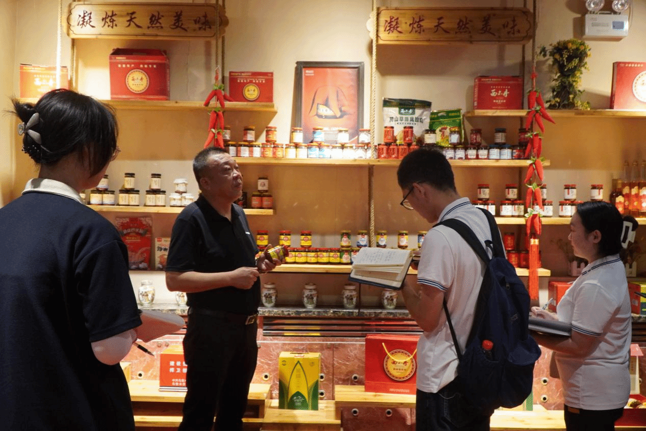 来到七一酱园酿造有限公司和西尔丹食品有限公司的生产车间,实践团队了解到一瓶酱、一瓶醋如何从粮食到餐桌上的成品调料。其中,七一酱园酿造有限公司距今已有100多年的酿造历史,是西北地区历史悠久、规模较大的酱醋酿造企业之一,也是新疆仅存的“中华老字号”调味品企业。两大企业不仅坚守着古老的制作工艺,更积极寻求创新之路。实践队了解到,酱园积极同高校及科研机构的合作,尝试将传统酱品与现代饮食文化相结合,推出了一系列符合年轻人口味的新品,如低盐健康酱料、特色风味酱菜等,既保留了传统风味,又满足了现代人对健康饮食的需求。企业还通过线上销售、文化体验游等方式,拓宽市场渠道。谈及做食品企业的理念,企业董事长程华说道:“做食品一定要坚守绿色健康的底线,做到原料优质、配方干净,坚决不添加危害健康的添加剂。”