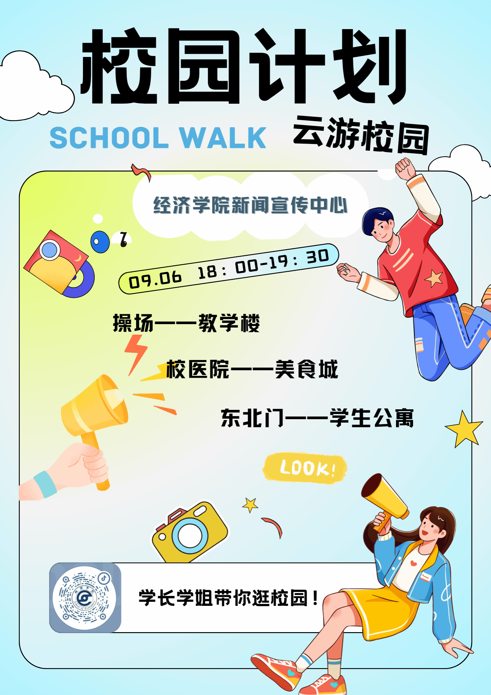 学生主讲员以第一人称视角在学院官方抖音通过直播的形式带新生游览校园,向他们展示了操场、食堂、教学楼、宿舍等学校基础设施和生活学习区域。新生们通过直播镜头清晰直观地感受到校园风光,对校区设施分布和生活环境有初步了解。看到宽敞明亮的教室、绿意盎然的中锦湖、干净整洁的宿舍、便捷的一站式学生社区,新生们无比喜悦。