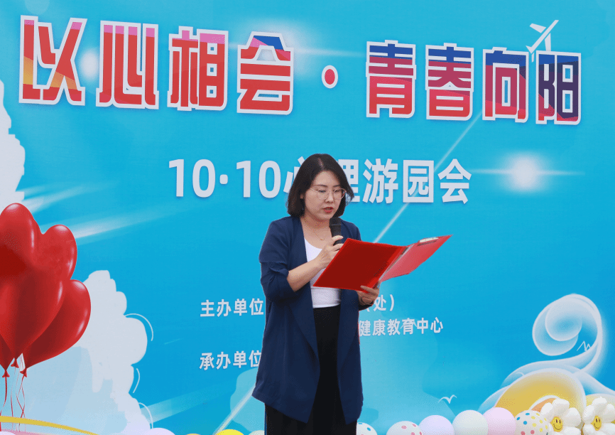 开幕式上,心理健康中心江秋玮老师详细介绍了本次心理嘉年华活动,活动以游园会的形式开展,设置了三个板块,分别是心理健康知识科普站、心理互动游戏区和心灵手作区,她希望大家通过一系列丰富多彩的活动,搭建起一座心灵沟通的桥梁,让每一位同学都能在阳光下健康成长,绽放属于自己的青春光彩。