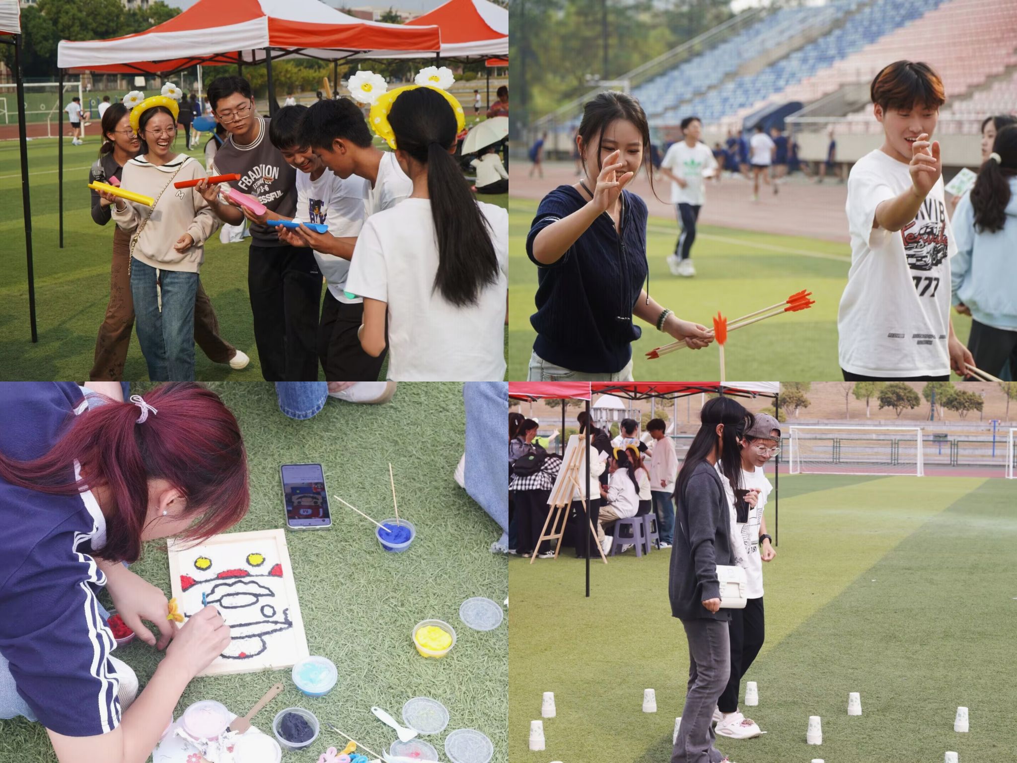 游园会现场投壶、涂鸦、拼图、预判你的预判等各种趣味心理小游戏吸引了众多学生参与体验,帮助学生们缓解生活与学习中的压力。微笑签到版前,同学们用画笔描绘出心中的微笑,温暖的色彩,如同初升的阳光,照亮了彼此的心灵。纸浆画和扭扭棒两个活动也成了游园会的亮点。亲手制作的手作,将创意和心意融入其中,情意满满,正如每个人都是独一无二的存在。