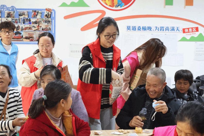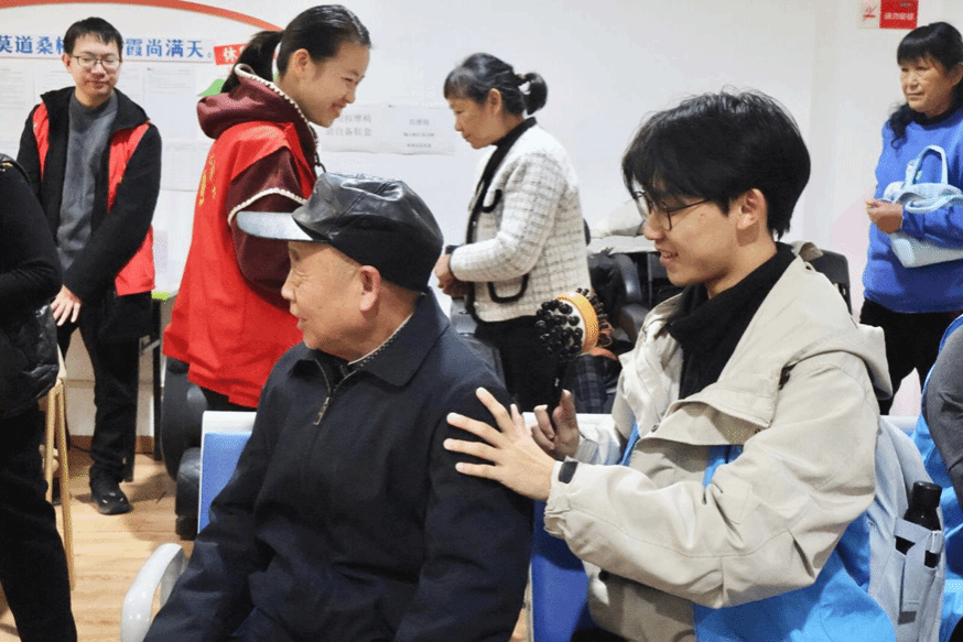 初冬的暖阳与心中的盛夏撞个满怀。队员们为老人们精心准备了文艺节目,在表演中热情地与老人们互动;还拿上球拍,与他们来一场乒乓较量。喜跃抃舞,传递青春活力;矫健挥拍,尽显庞眉容光。 志愿者们积极与社区老人唠家常、话日常,分发小零食、帮助做清洁,老人们的幸福感与获得感化作句句真诚的倾诉、阵阵爽朗的笑声,他们分享着社区的活动百态,队员们也讲述着自己的大学生活,老人们那一双双充满温热、写尽沧桑的手与同学们紧紧握在一起,如同心与心的紧紧依偎,将不拘年岁、相知相亲的温馨动人画面展现得淋漓尽致。