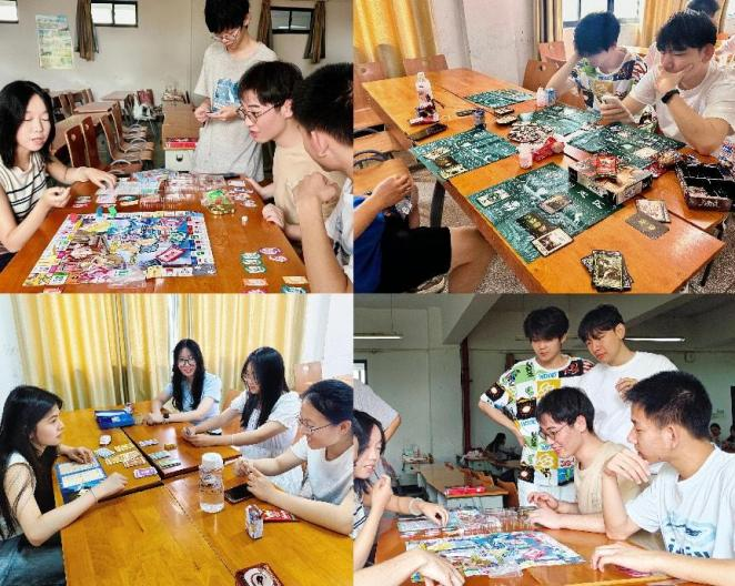 在活动正式开展前,学院通过多渠道、多形式进行预热宣传,为活动成功举办奠定坚实基础。活动现场精心打造的心理趣玩会精彩纷呈,互动项目丰富多元。在“思维交锋”桌游专区,三国杀、谁是卧底、大富翁等经典桌游有序开展。同学们通过角色扮演与逻辑推理,在思维碰撞与热烈交流中舒缓压力,有效提升情绪表达能力;而“指尖疗愈”手工区域,则为同学们准备了毛毡、扭扭棒等材料。大家沉浸于创意手工制作过程,在一针一线、一缠一绕间沉淀心绪,实现心灵的自我疗愈。值得一提的是,每一个活动项目均深度融入心理健康教育元素,让同学们在轻松愉悦的氛围中,潜移默化地掌握科学的情绪管理技巧。