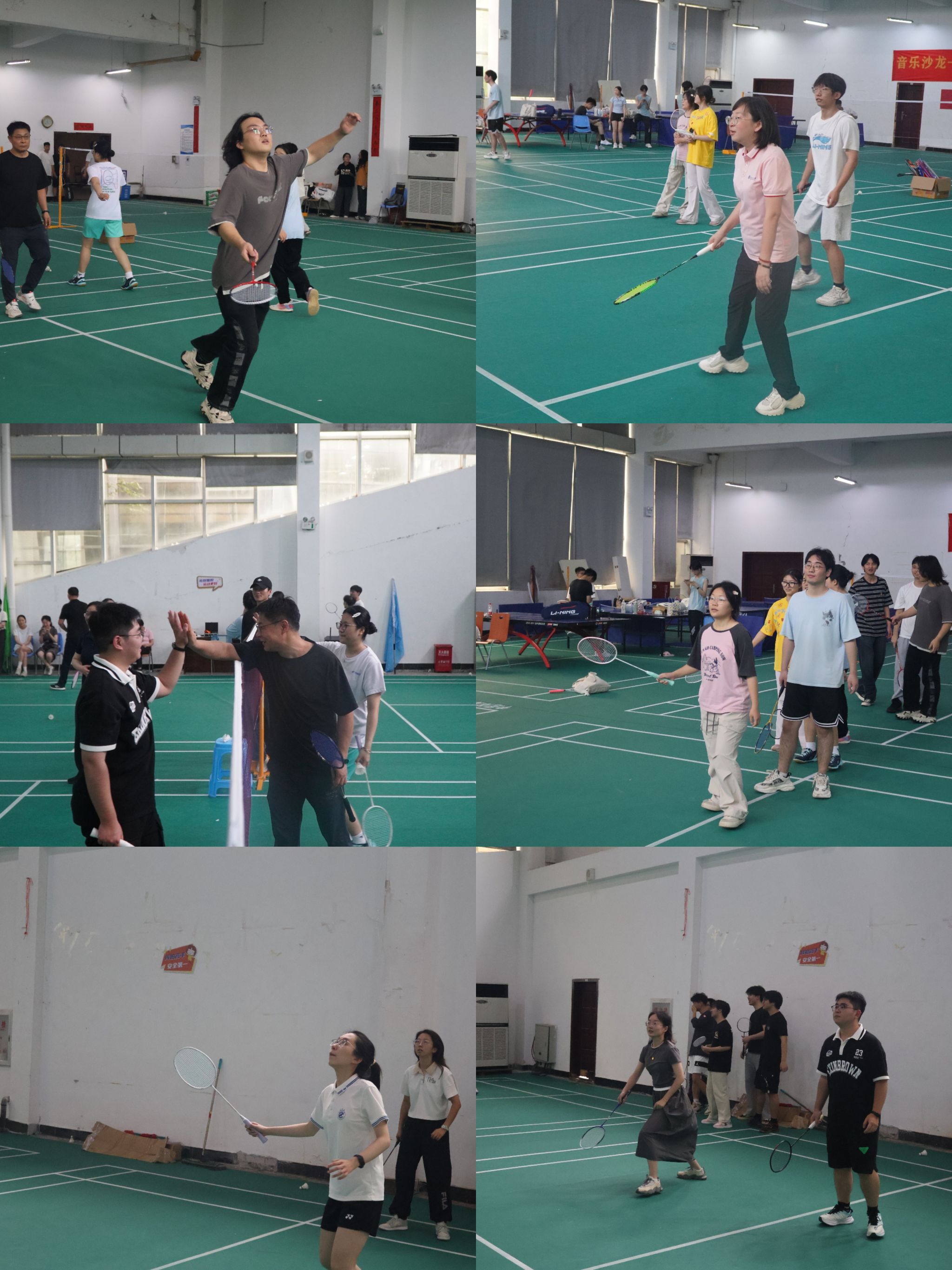 趣味羽毛球接力赛以小组为单位,时限五分钟。队员们在球场上快速切换站位,随着计时开始,羽毛球在空中划过一道道优美的弧线。在“羽”林争锋环节,师生羽毛球竞技交流精彩上演,既有稳扎稳打的战术布局,更有破局创新的技术突破。精准的扣杀,灵活的走位,默契的配合,每一个动作都体现出高超的球技和拼搏的精神,传递着亦师亦友的深厚情谊。