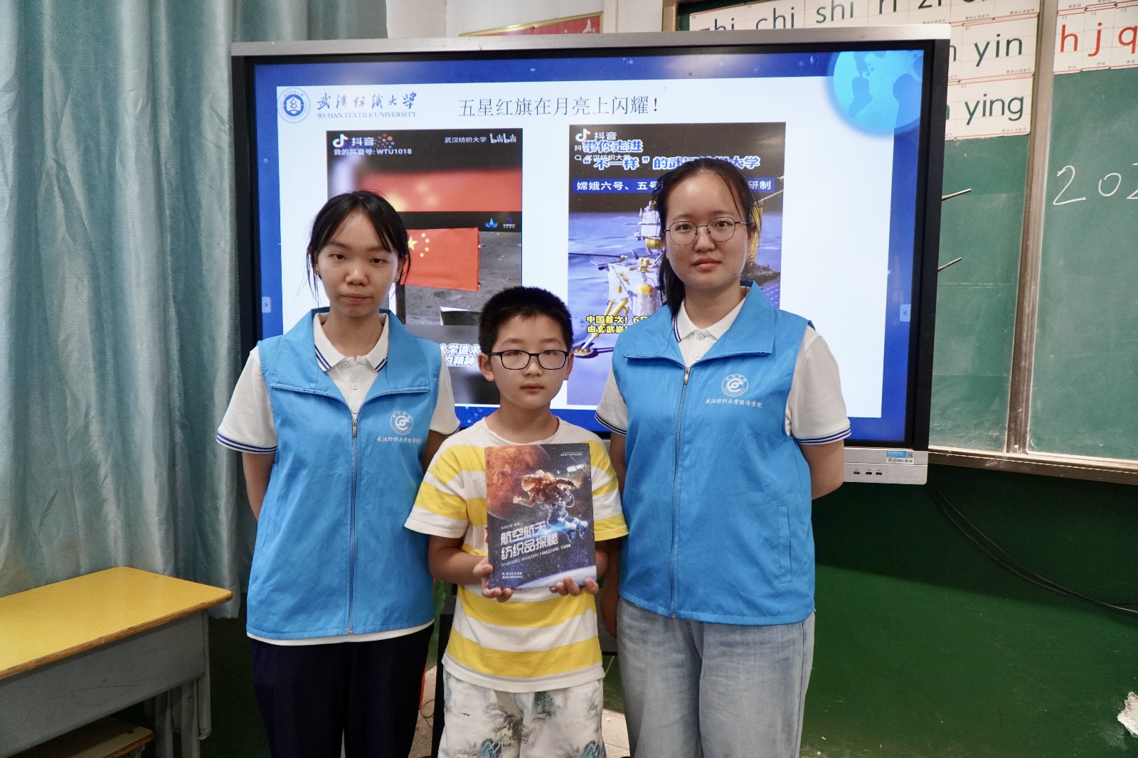 为激发青少年对宇宙探索的兴趣,厚植科技报国情怀,7月7日,武汉纺织大学经济学院“乡育乡伴,‘经’彩一夏”支教团在湖北省鄂州市梁子湖区涂家垴镇以“蓝海探索:航天科技扬未来帆”为主题开展支教活动,点亮青少年科学梦想。支教团分别在金海希望小学、斗山村、涂镇村同步开展特色教学,为当地儿童打造充实的成长课堂。