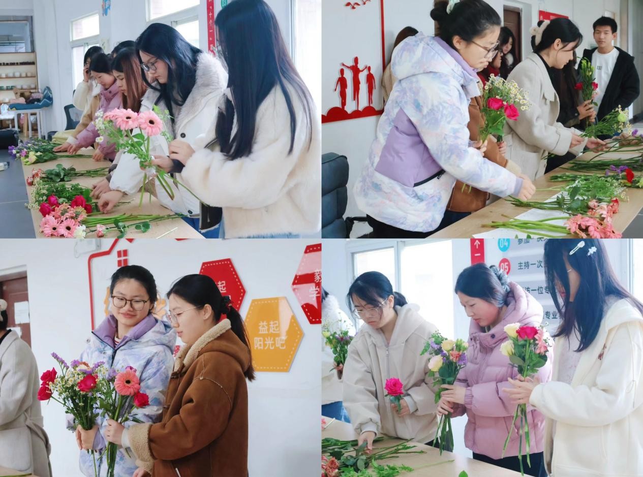 一花一世界,一叶一乾坤。本次活动以花为媒、以节为桥,不仅为女生们送上了温馨别致的节日祝福,也提供了放松身心、感受美好的契机。在潜移默化中,提升了学生的艺术修养与动手能力,进一步增强了集体凝聚力与文化认同感。今后,学院将继续秉持立德树人的初心,以文化人、以美育人,持续开展形式多样、内涵丰富的校园文化活动,引导学生在实践中陶冶情操、涵养品格,为培养德智体美劳全面发展的时代新人贡献源源不断的青春力量。