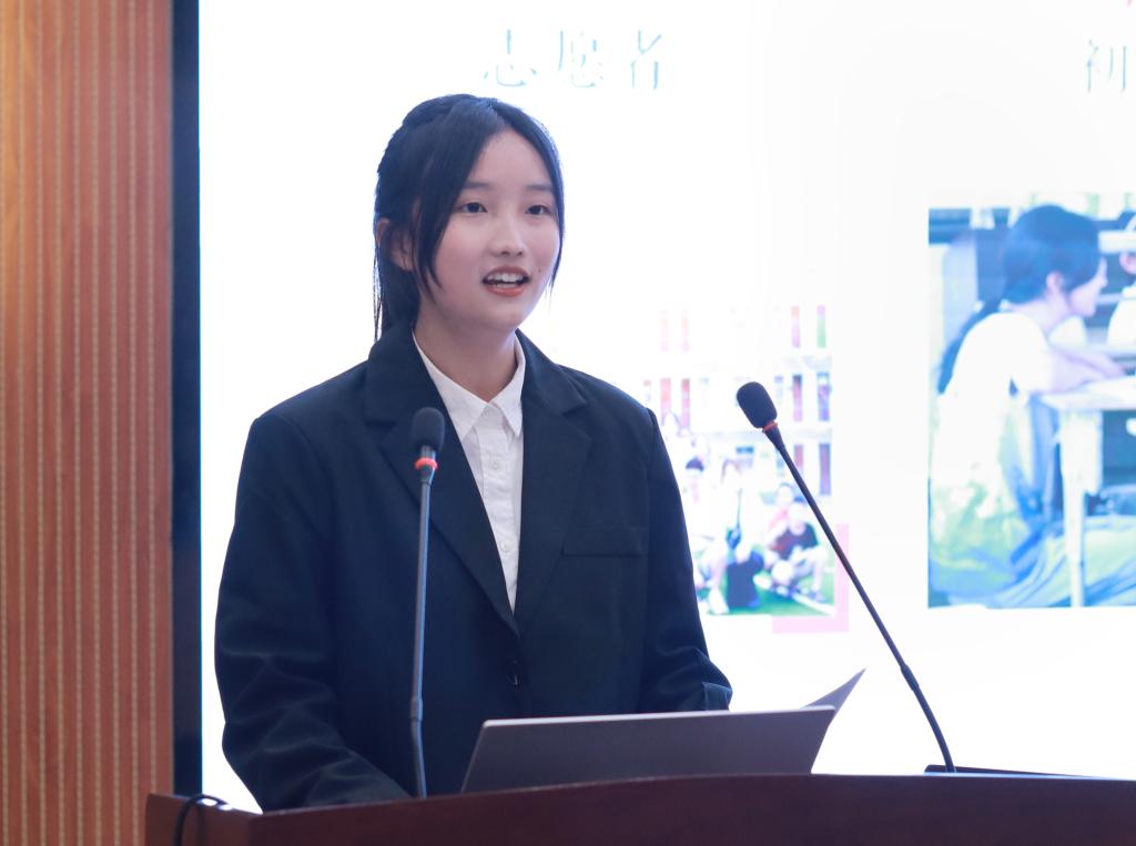 “走出校园、深入车间、站上田头,我才知道我的专业还可以做些什么……”“触摸到一朵朵棉花,看到棉花转化为一件件、一个个产品的神奇,我才真切感受到了纺织与科技的伟大……”“看到孩子们真诚的笑脸,看到老党员们坚定的眼神,我明白了我以后也要成为一个能给别人带来更多力量与价值的人……”讲述过程中,实践队员们一句句朴实的话语、一张张鲜活的照片,让与会人员感同身受,也激发了大家奋进逐梦的激情和信心。他们有的横跨大半个中国,来到大美新疆,与院士一起普及纺织科技知识,开展棉花产业调研;有的用专业服务社会,帮助村民推广农产品,深入车间提供技术方案,以青春力量助力乡村振兴事业;有的跨越2000多公里,以直观生动的影像语言和真挚朴实的基层视角,诠释出交通方式升级变化对当地社会生产生活的巨大推动作用;有的发挥专业特色,通过汉绣的创新设计与产品开发探究非遗汉绣擦亮地方红色名片,帮助乡村留守人员就业增收;有的在支教服务中将中国传统文化与美育相结合,带领孩子们在现代绘画、手工制作中学习优秀非遗,感受中国传统文化。一个个生动感人的实践故事不仅是他们成长的见证,更展现了纺大学子践行“崇真尚美”校训精神的真实缩影。现场高潮迭起,大家不时报以热烈掌声。