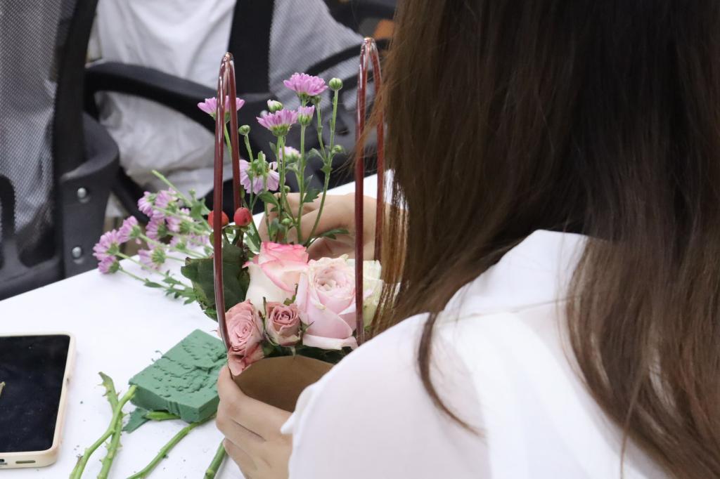 为缓解学生学习压力,提升学生生活品位和艺术修养,丰富学生精神文化生活,学院于5月30日下午在崇德楼305开展“指尖优雅,花漾绽放”花艺沙龙活动。
