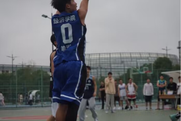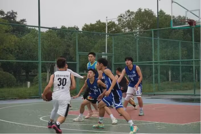 篮球健儿们在篮球场上挥汗如雨,健步如飞。他们配合默契,分工合理;他们相互扶持,紧密配合;他们互相鼓励,积极拼搏。他们时而逼抢、时而挡拆、时而防守。他们为观众们呈现了一场精彩的比赛,在一次次争球中展现昂扬斗志,在一次次进攻时展现青春力量,在一次次投篮中展现正茂风华。大家在比赛中全力以赴,无关成败输赢,但求问心无愧。研究生丁平的一次精彩进球赢得了全场的欢呼;本科生于文浩的一次精彩反攻点燃全场;喻洲林面对对方的防守,毫不退缩,顶着压力为队伍打进两分,全场为之沸腾。