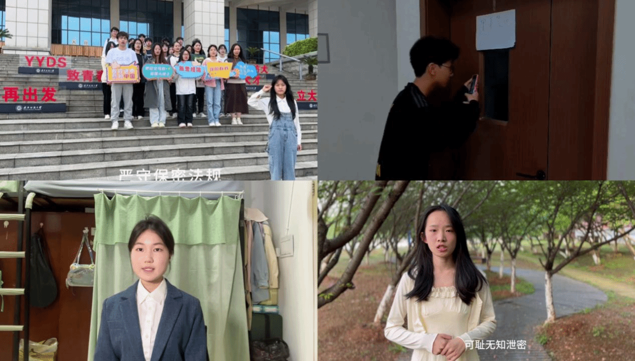 “我宣誓:严守保密法规,捍卫信息安全,坚决维护国家利益。”4月14日,武汉纺织大学经济学院金融12304班学生拍摄的“保密法治”微视频在2023级年级大会放映展示。值4月15日全民国家安全教育日来临之际,经济学院组织各班级学生拍摄“保密法治”微视频,引导学生安全教育从“要我安全”到“我要安全”转变,反响强烈。