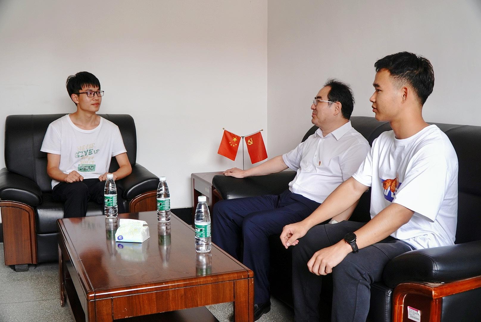 在交谈中,田辉玉得知张靖康同学想报考本校经济学院金融专硕,并且倾向于以后选择王滨教授作为研究生导师时,他马上询问王滨教授的办公室地址,立即现场“牵线搭桥”,带张靖康同学“上门认亲”。他向王滨教授介绍了张靖康同学的基本情况和报考意愿,并与王滨教授一起分析了张靖康同学的考研复习进展情况,就存在的困难与问题进行了深入沟通交流,他表示“孩子们有考研想法,是一件非常好的事情,我们要全力支持。特别是对第一志愿报考我们自己学校的学生来说,这既是对你的一种信赖,也是对我们学校办学质量的一种认可,我们要尽其所能的‘扶上马、送一程’”。他提请王滨教授多关心张靖康同学的考研复习情况,多给予关注指导。他勉励张靖康要坚定信心,主动多跟王滨教授汇报自己复习状况,遇到问题多向王滨教授学习请教,积极寻求指导与帮助。他叮嘱学院院长、书记,要持续深入了解学生需求,为考研学生提供更具针对性、更优质的服务。