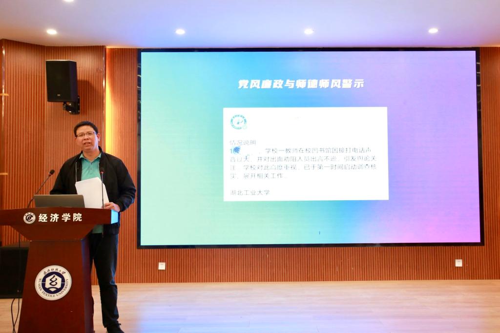 10月20日下午,学院在崇德楼T301组织召开教职工大会,开展党风廉政与师德师风教育,引导教师为人师表,做立德树人的典范,学院全体教职工参加了会议。