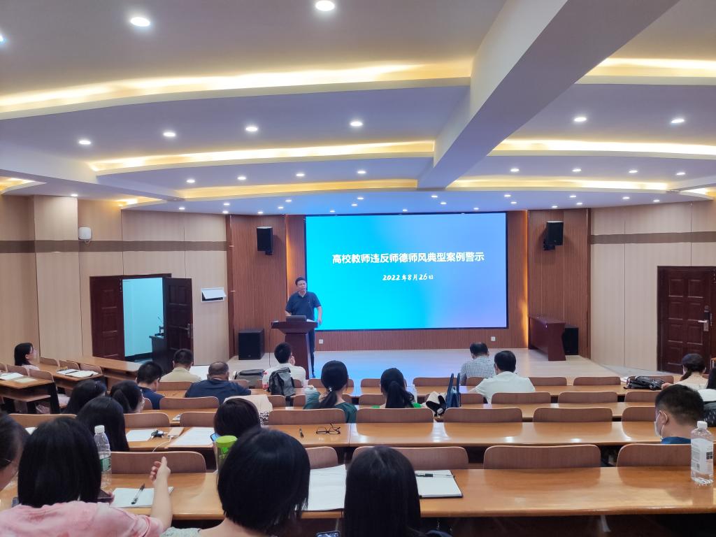 新学期伊始,经济学院在崇德楼T301组织召开教职工大会,开展师德师风及警示教育,引导教师坚守初心,做立德树人的典范,学院全体教职工参加了会议。