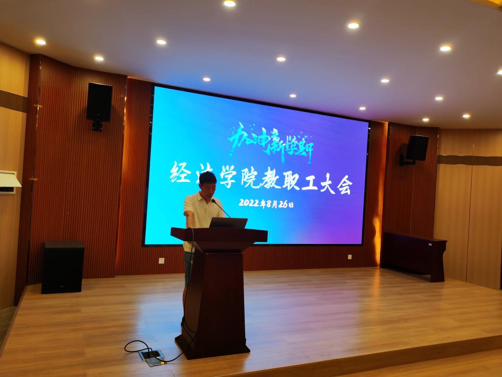 8月26日下午两点,学院在崇德楼T301会场召开2022年秋季新学期教职工大会,班子成员、学院全体教职工参加会议,学院党委书记刘园美主持了会议。