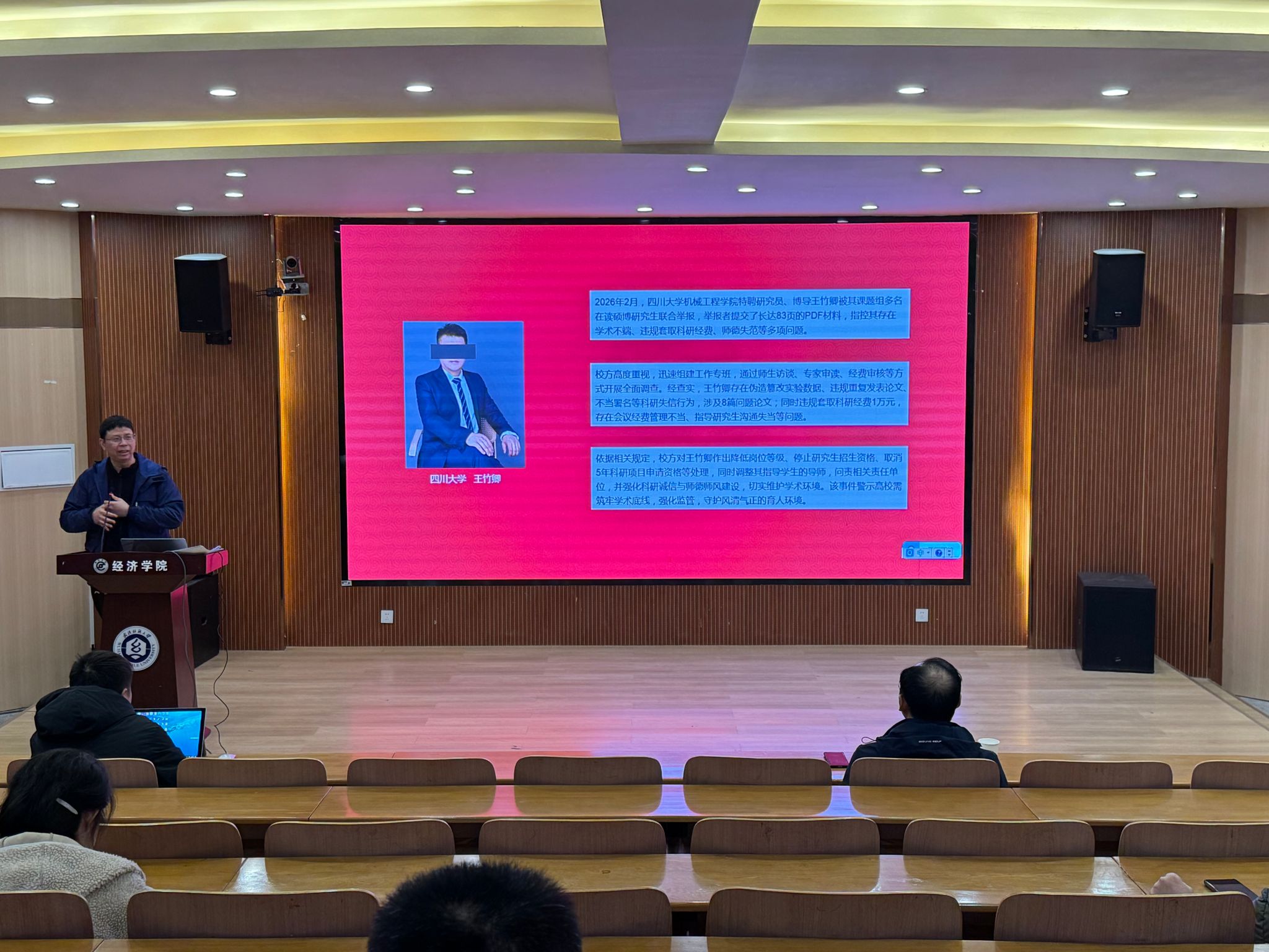 春启新程,奋进正当时。3月1日,经济学院新学期教职工大会在7-T301报告厅举行。会议全面总结2025年工作成效,部署2026年重点任务。学院党委书记刘园美主持会议并讲话,院长段丁强作核心工作部署,教学副院长李正旺、科研与研究生教育副院长王滨、党委副书记李静宇分别就分管工作发言,全体教职工参会。